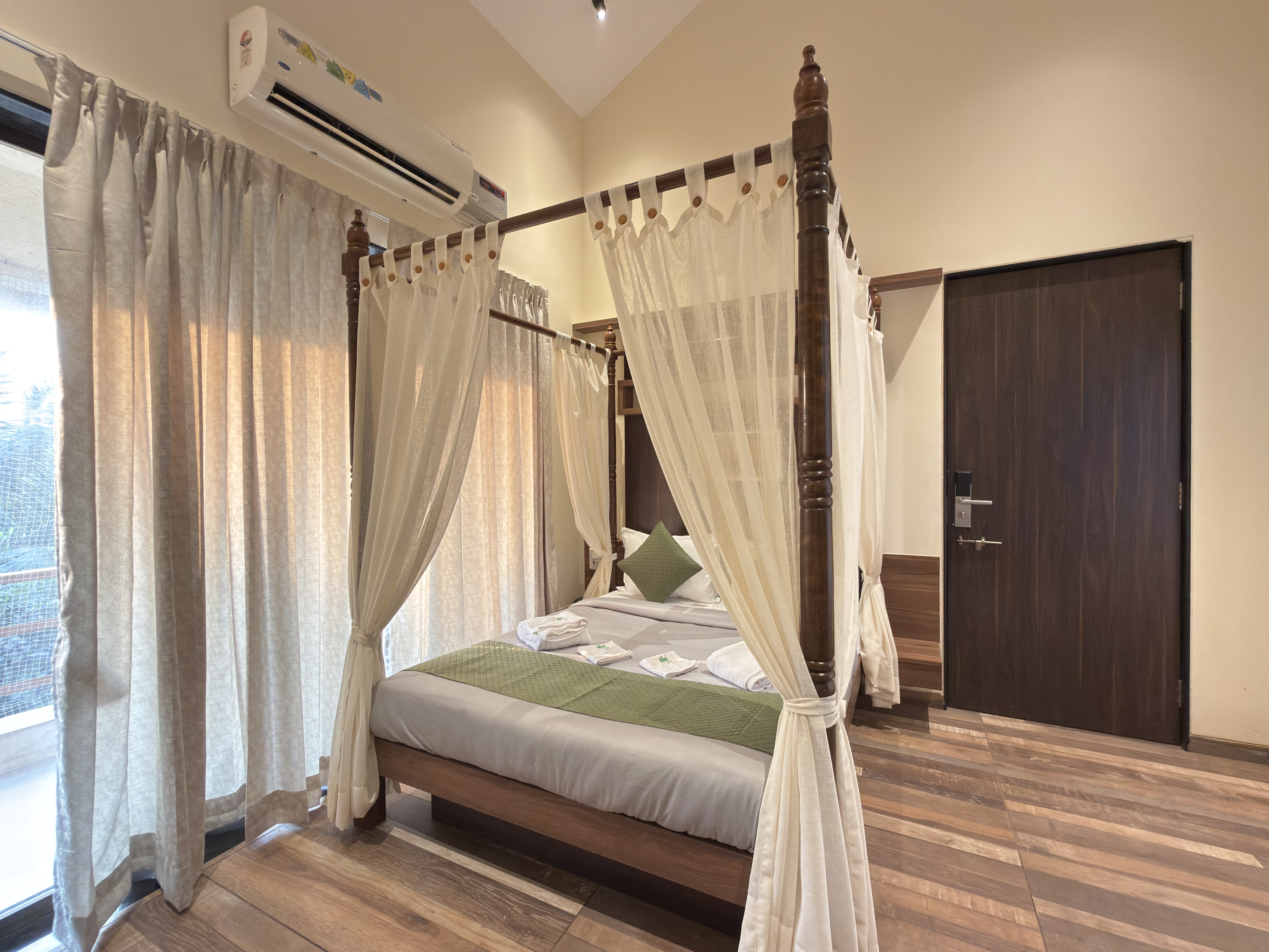 Queen/King size bed & sofa cum bed, Smart TV with OTT channels, Fitted Wardrobe, Mini Fridge, Dressing table with mirror, Hot Kettle, Bath Towels, Dental Kit, Sleepers, Free WiFi, pool/jacuzzi with open air theatre, ample of games, Live music on daily basis.