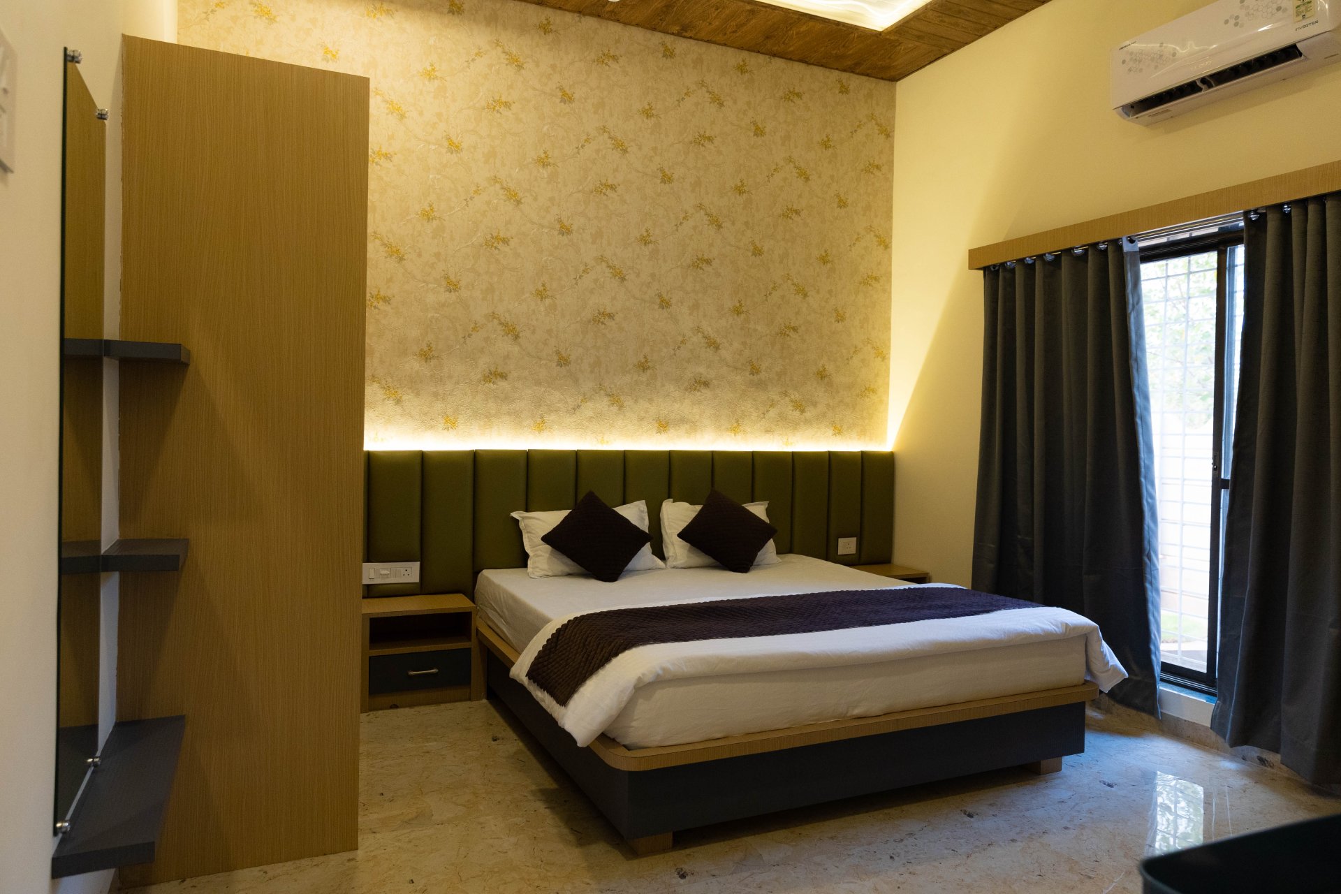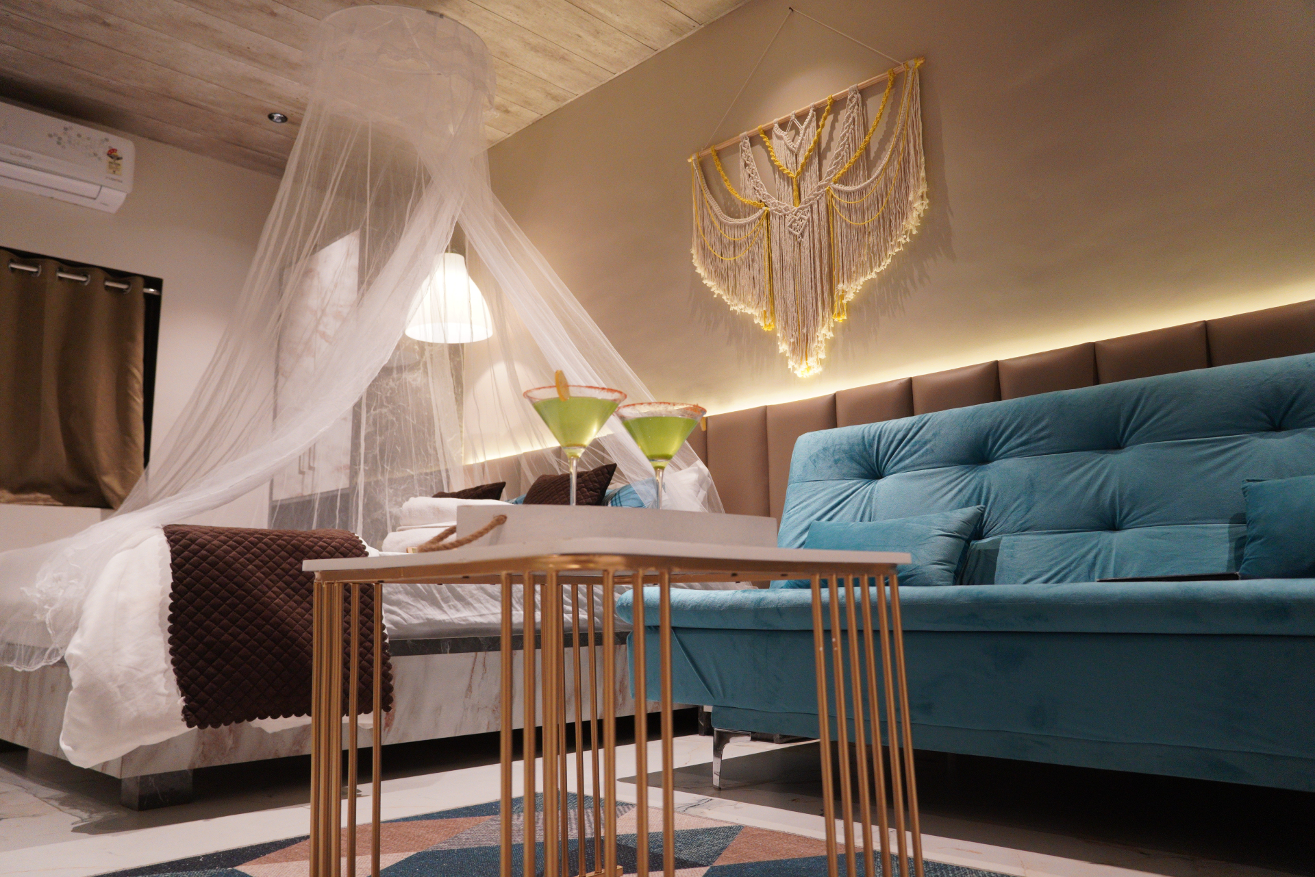 Queen/King size bed & sofa cum bed, Smart TV with OTT channels, Fitted Wardrobe, Mini Fridge, Dressing table with mirror, Hot Kettle, Bath Towels, Dental Kit, Sleepers, Free WiFi, pool/jacuzzi with open air theatre, ample of games, Live music on daily basis.