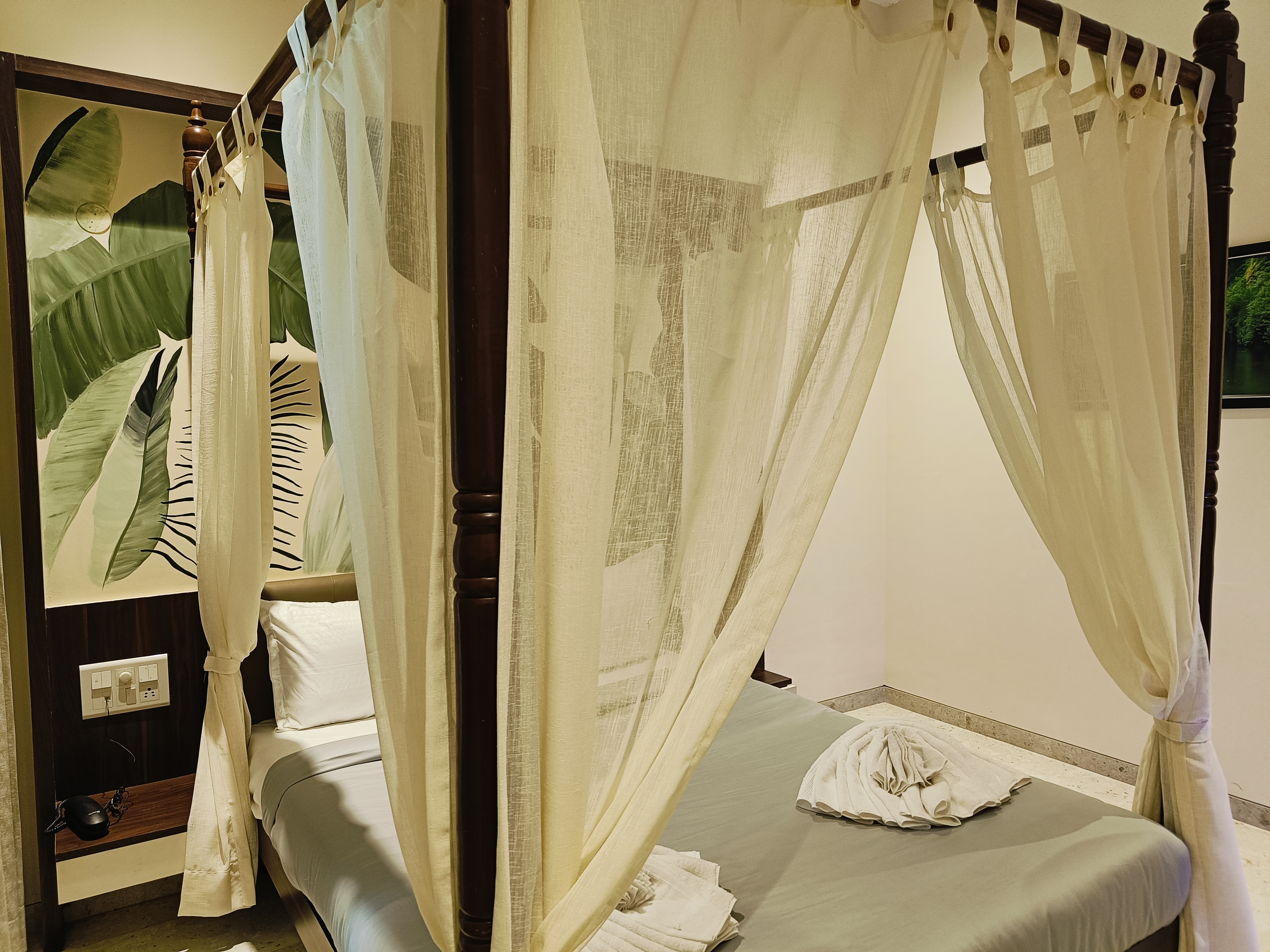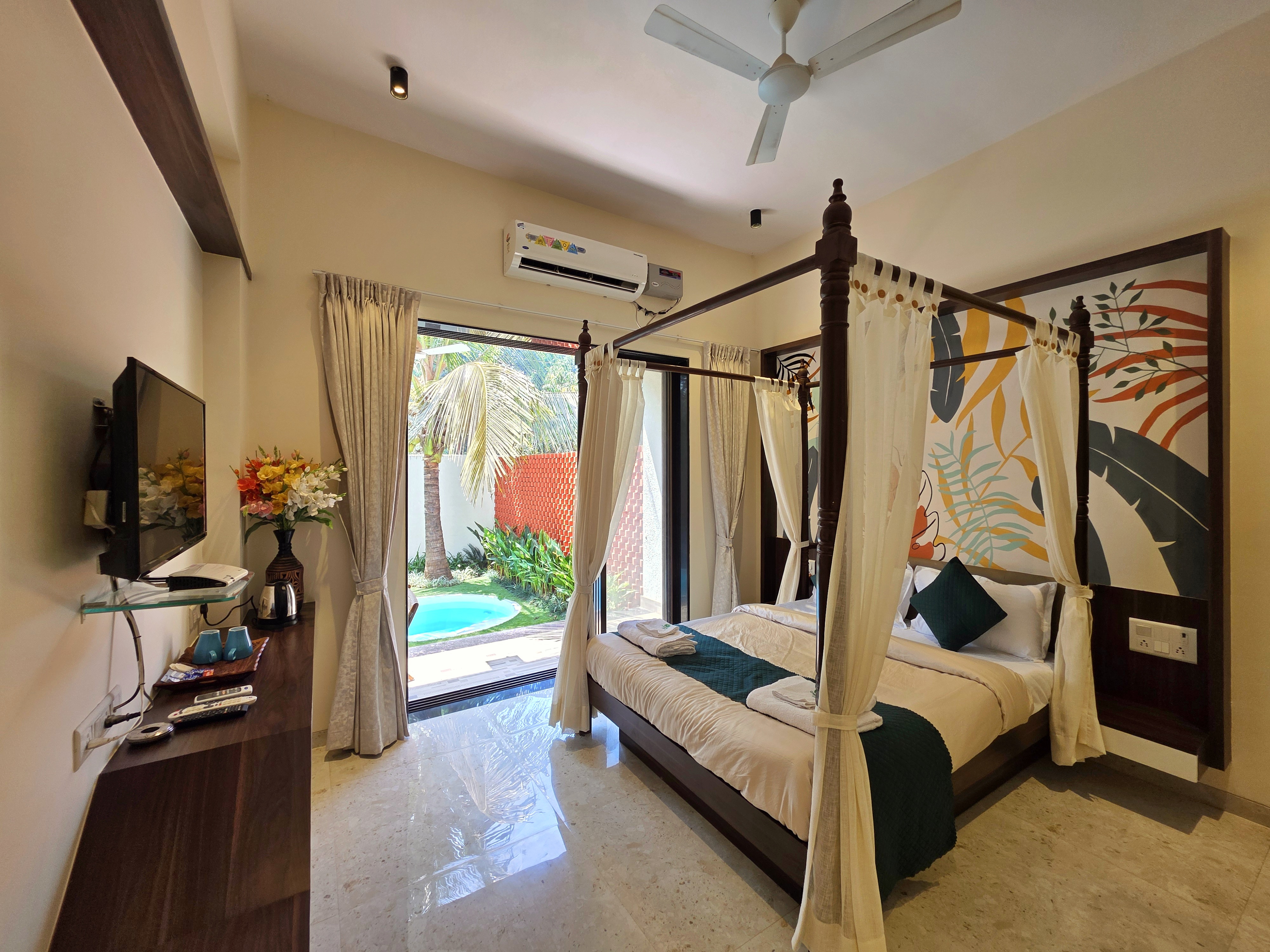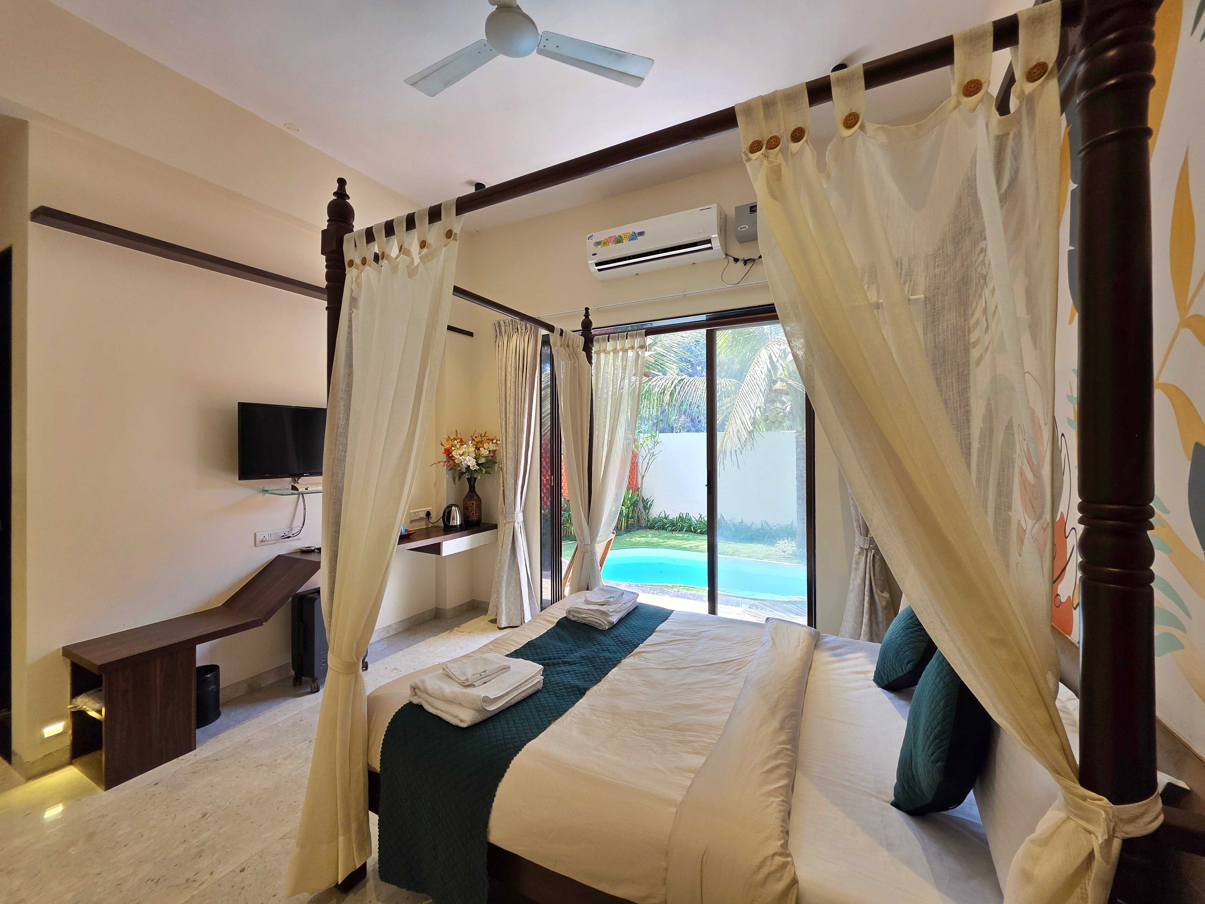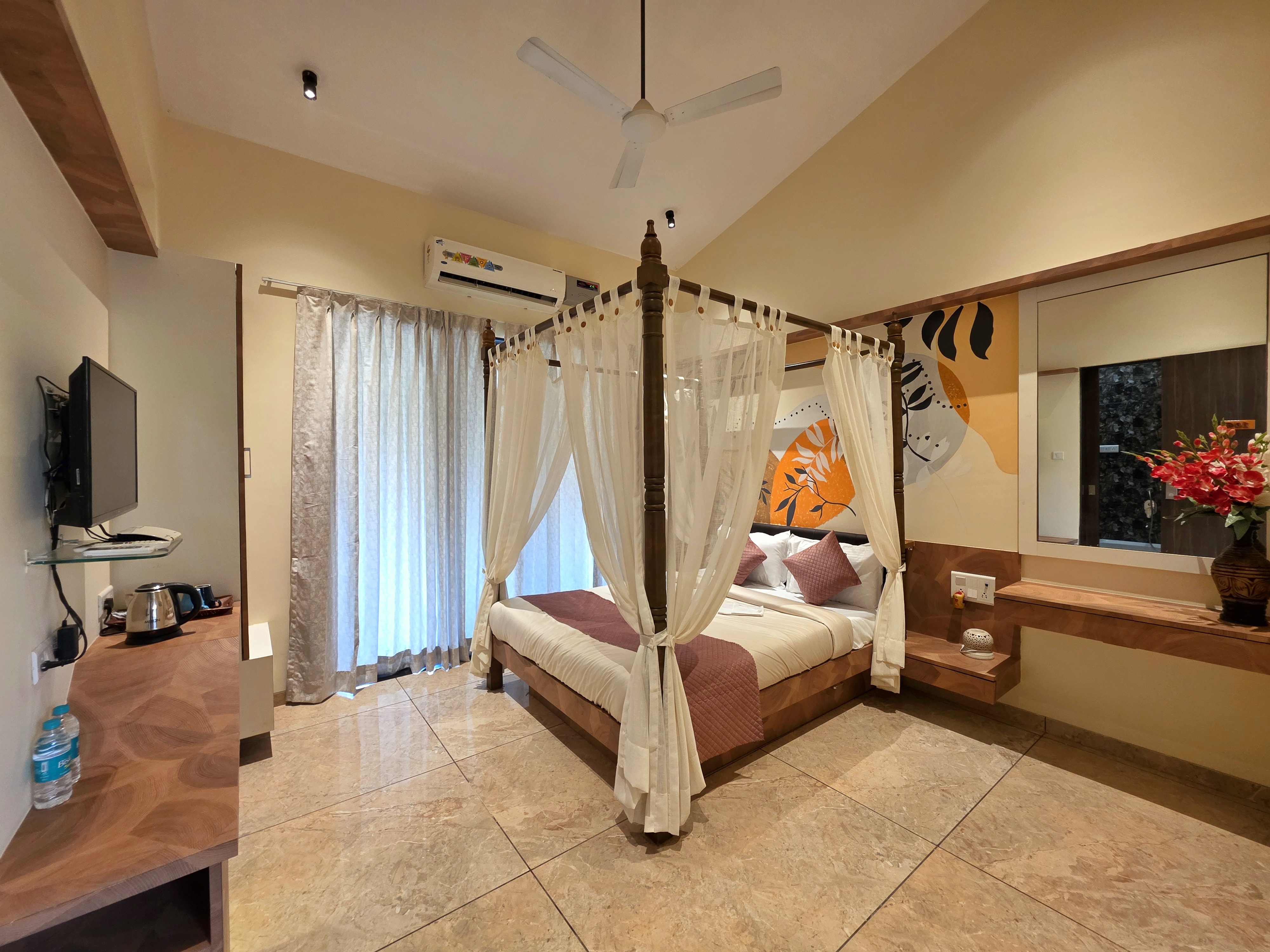 Queen/King size bed & sofa cum bed, Smart TV with OTT channels, Fitted Wardrobe, Mini Fridge, Dressing table with mirror, Hot Kettle, Bath Towels, Dental Kit, Sleepers, Free WiFi, pool/jacuzzi with open air theatre, ample of games, Live music on daily basis.