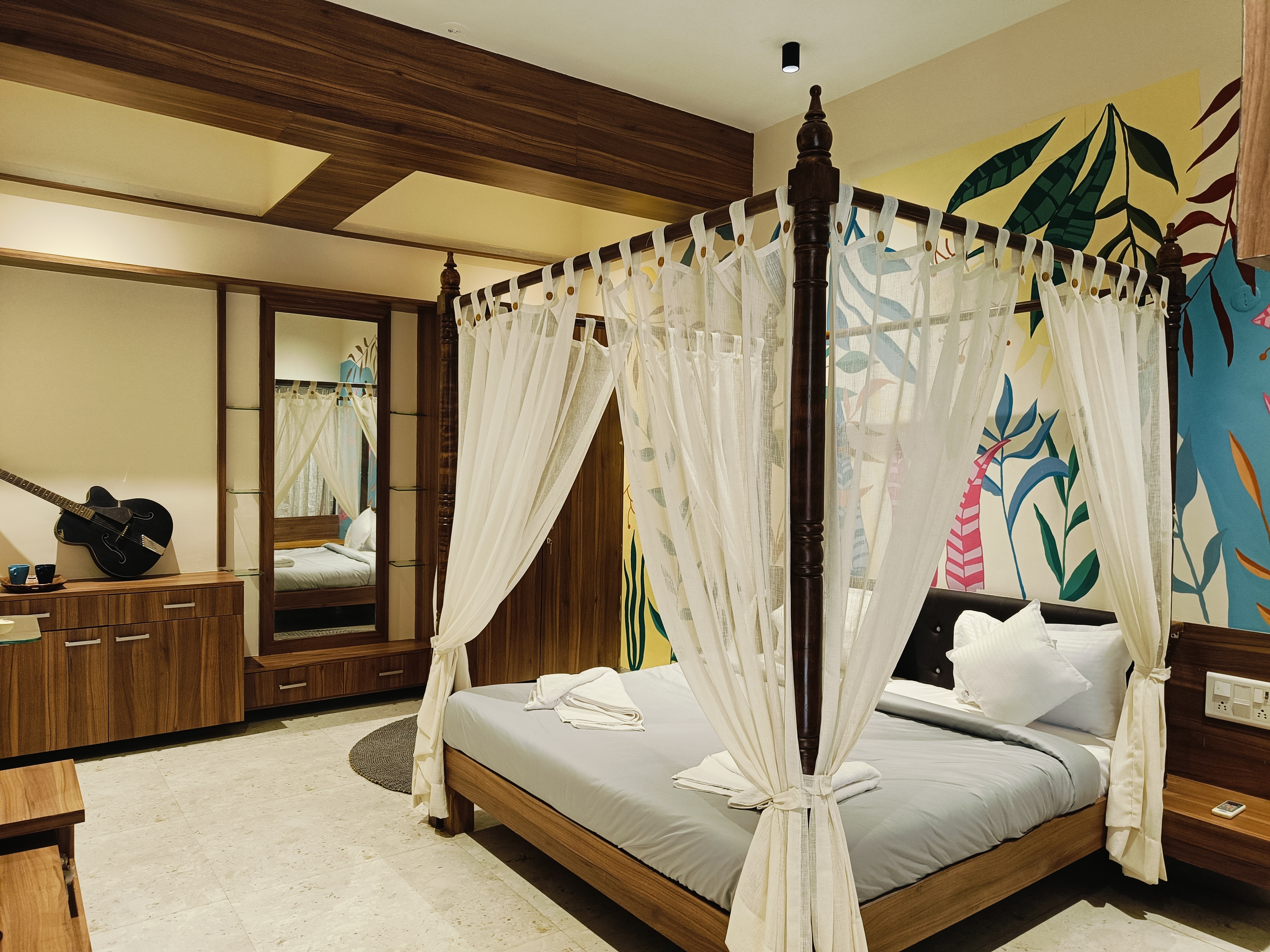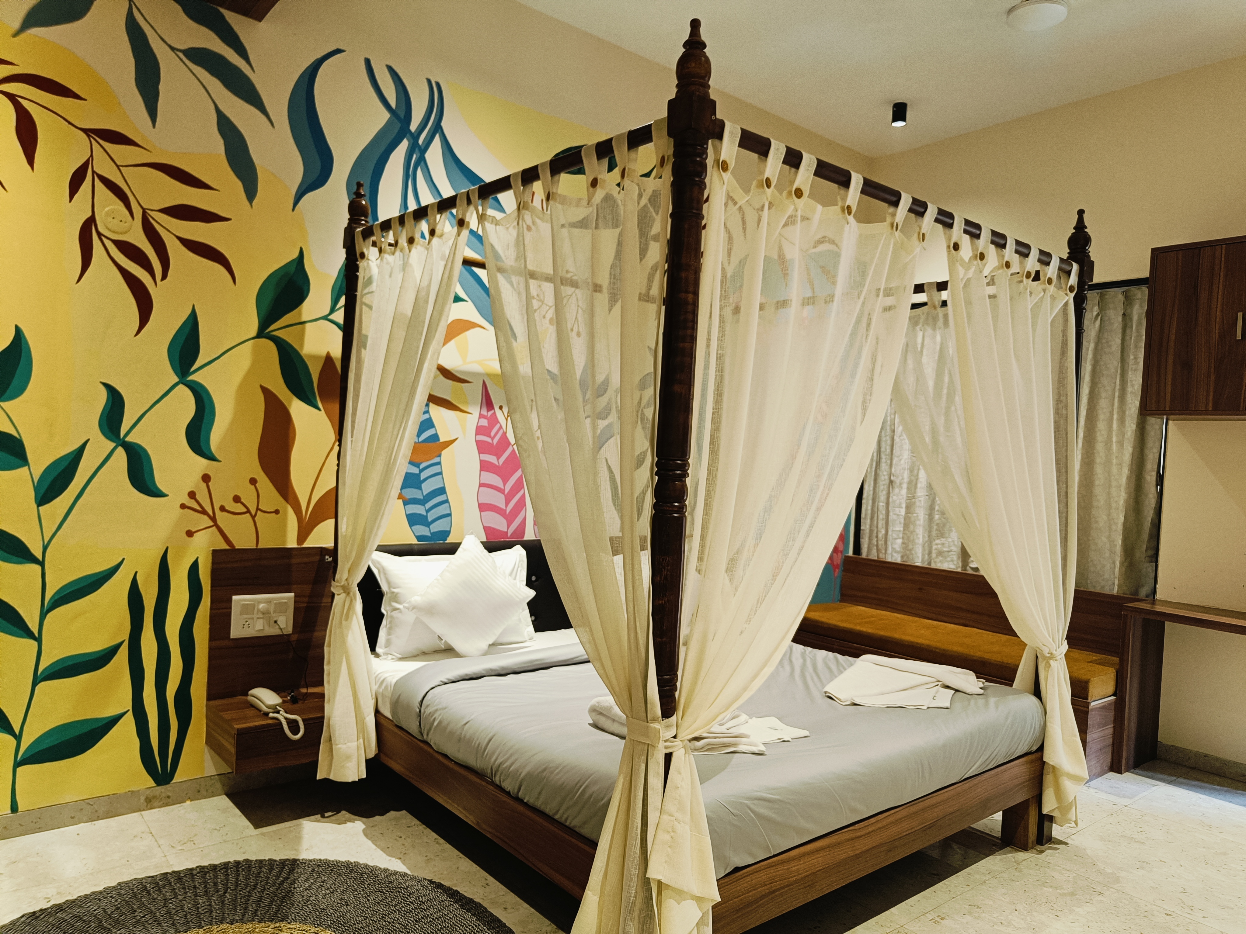 Queen/King size bed & sofa cum bed, Smart TV with OTT channels, Fitted Wardrobe, Mini Fridge, Dressing table with mirror, Hot Kettle, Bath Towels, Dental Kit, Sleepers, Free WiFi, pool/jacuzzi with open air theatre, ample of games, Live music on daily basis.